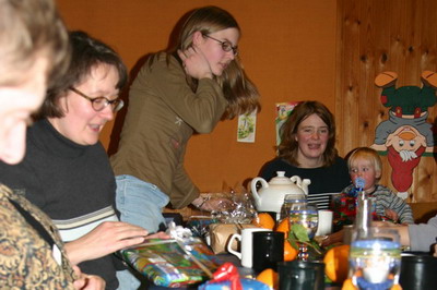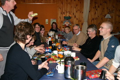 Billeder fra julegløgg i den sjællandske del af familien i spejderhytten Knasten ved Ganløse.