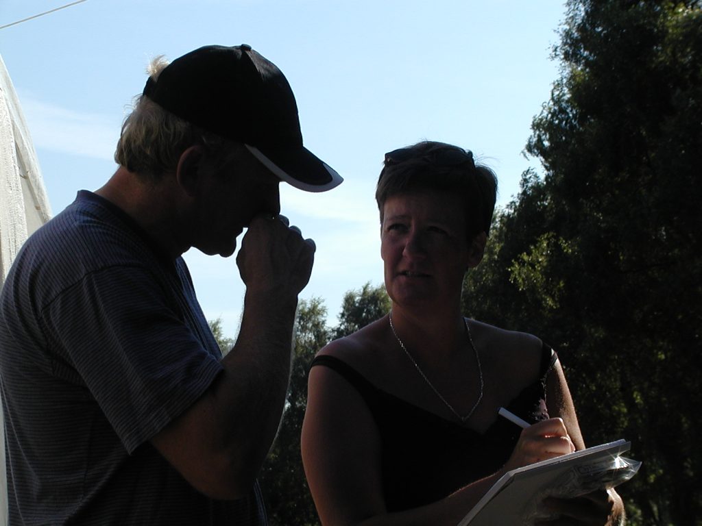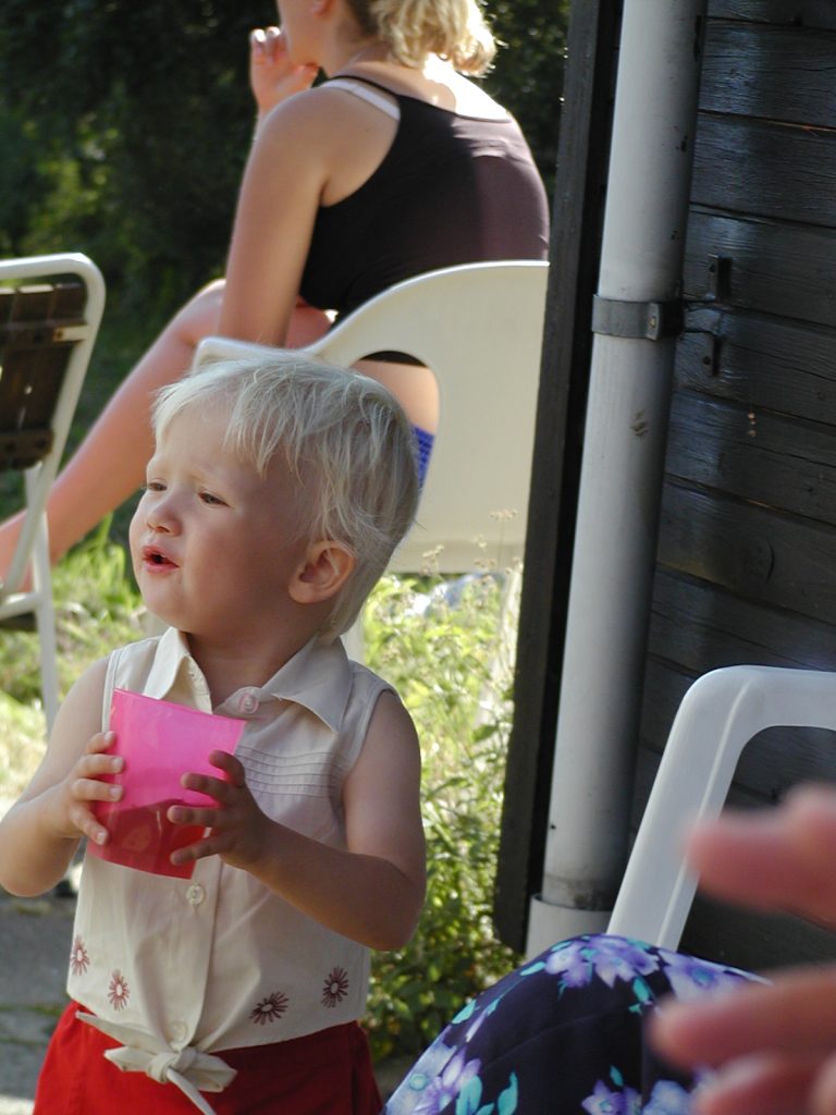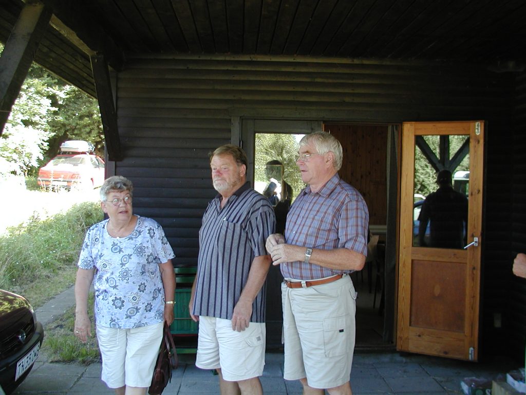 Familiekomsammen i Knasten ved Ganløse 8-10/8 2003 – der var opvaskesang på den evigglade kobbersmed. Årets taljemål: Poul 110, Svend 103, Carl Erik 105, Ejvind 116. Se invitationen.